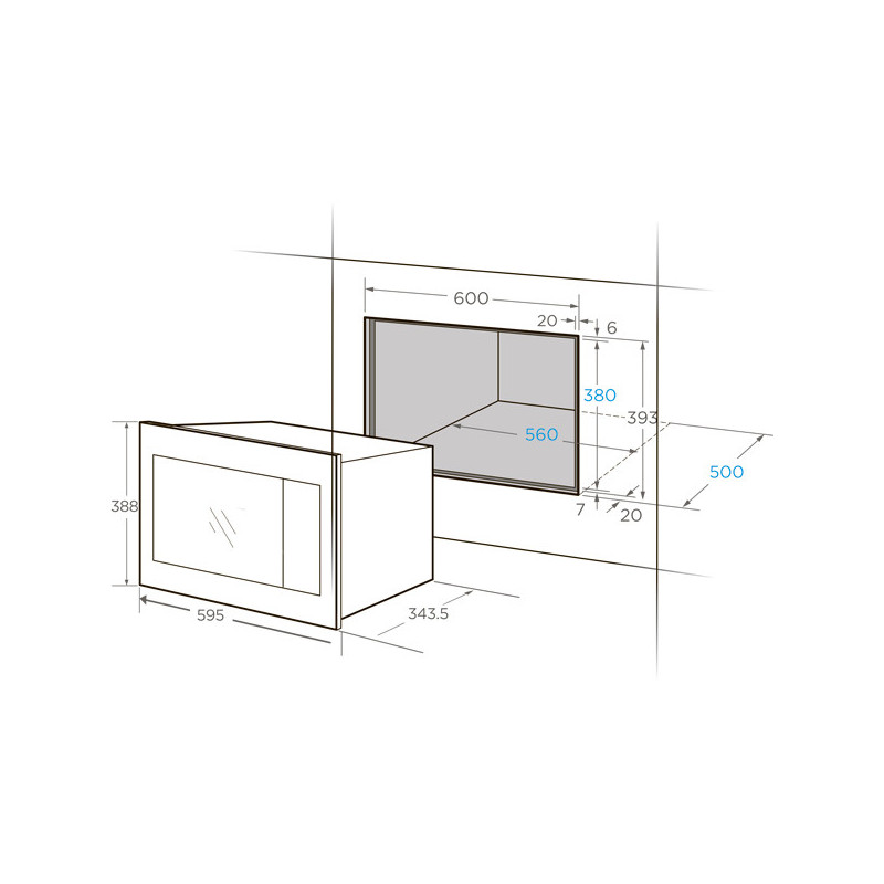Розміри ніші для вбудовування (ВxШxГ) 38 x 56.6 x 50 см,