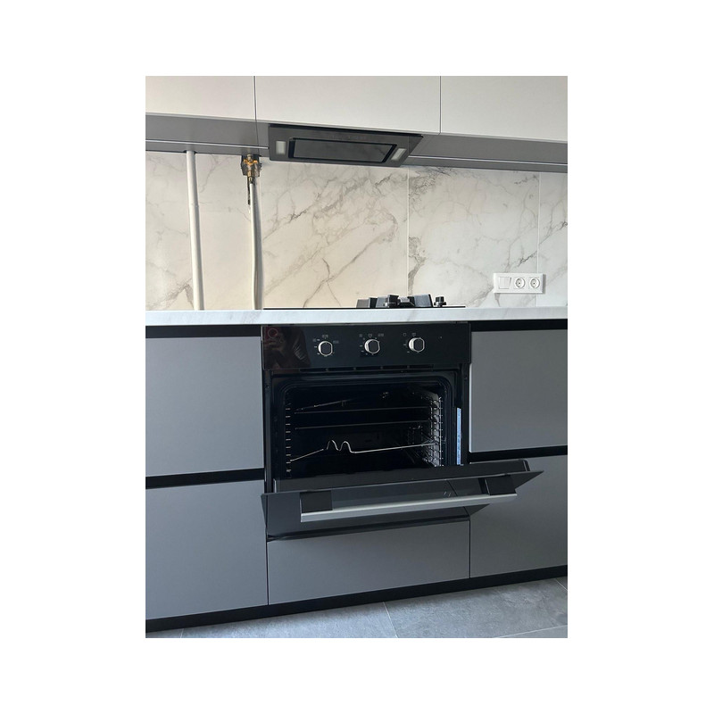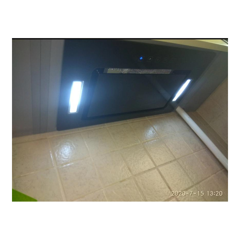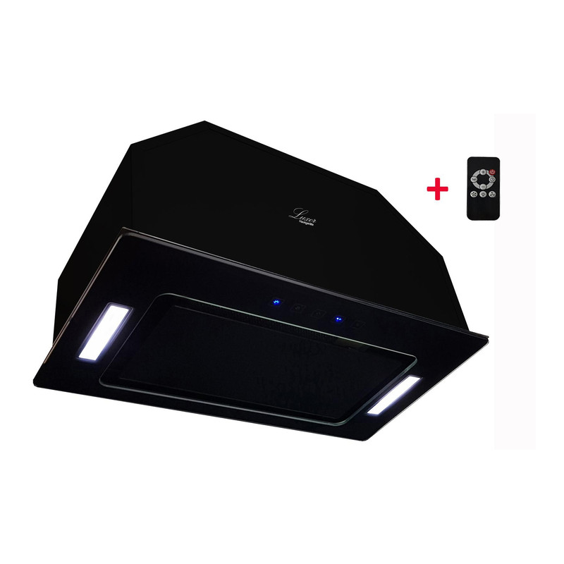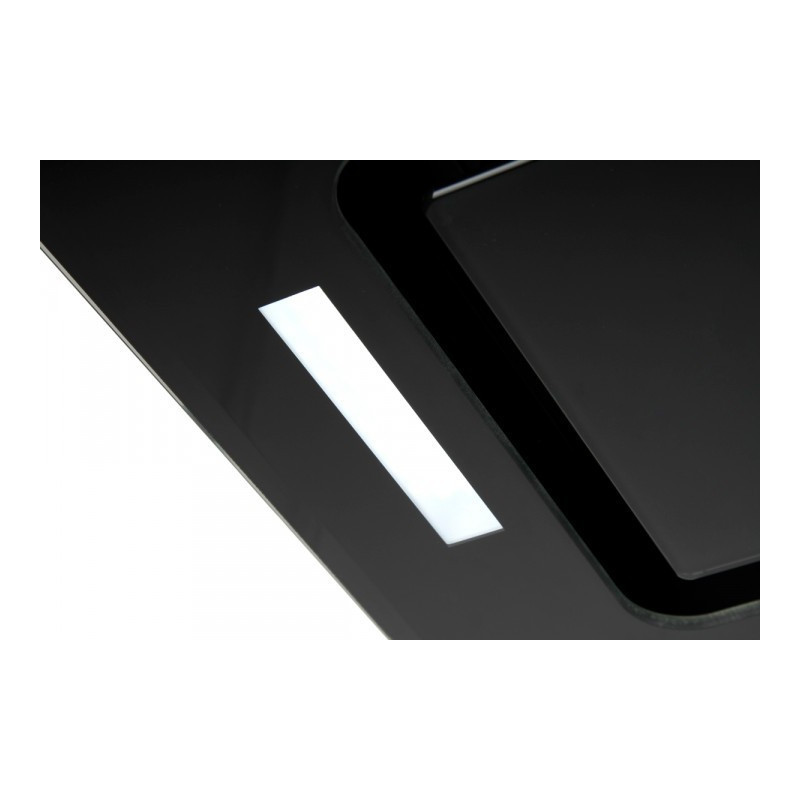 дистанційний пульт управління, датчик увімкнення витяжки від запаху, таймер відключення, жк дисплей, 2 лампи освітлення LED, зворотний клапан, гофро труба в подарунку, повністю скляний фасад чорного кольору, підсвітка індикації керуваня.